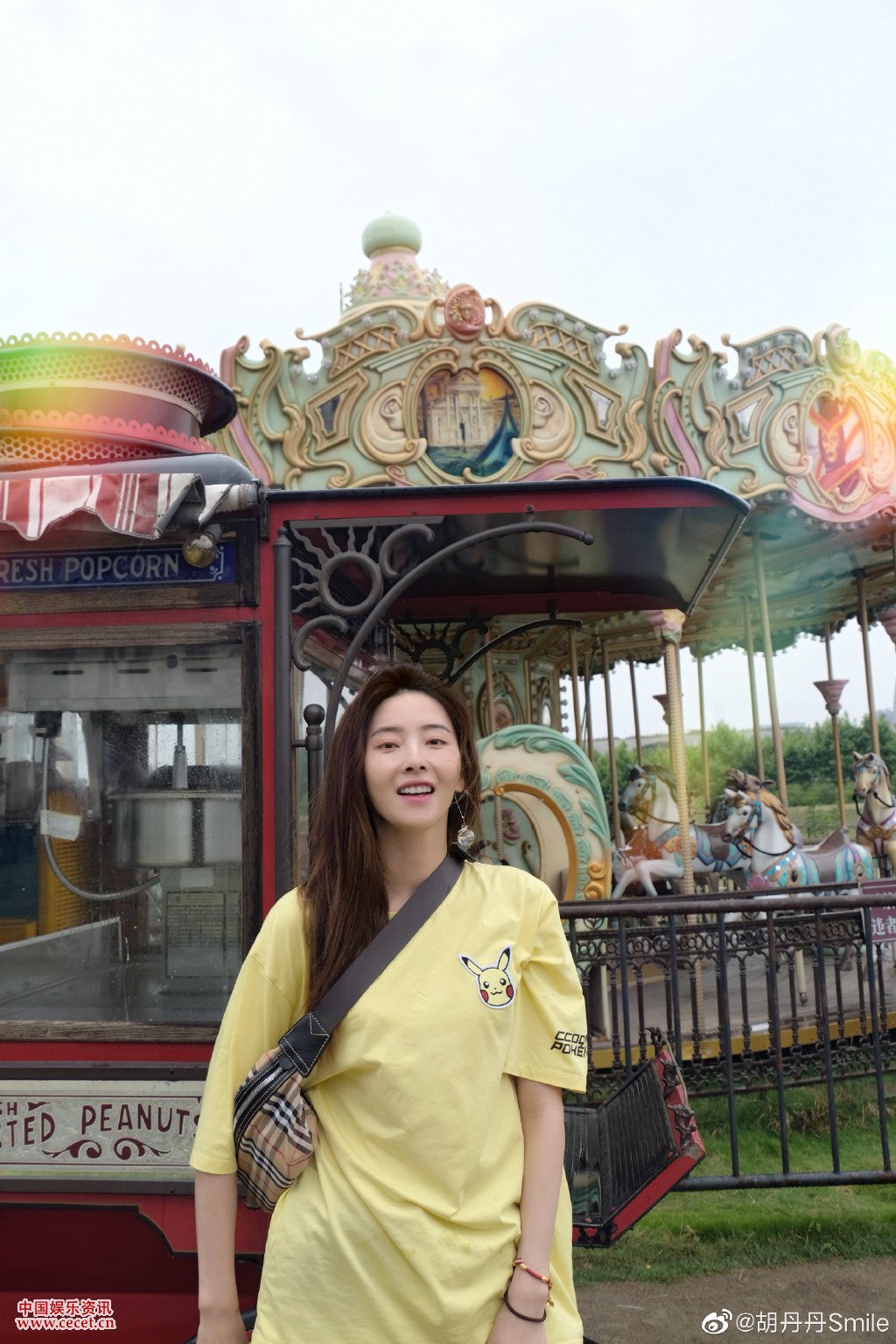 胡丹丹出游照美景佳人 側臉甜笑少女范十足