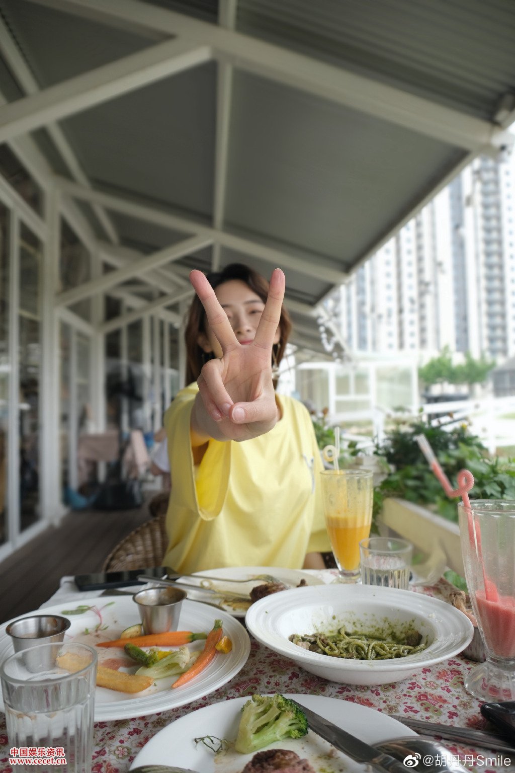 胡丹丹出游照美景佳人 側臉甜笑少女范十足