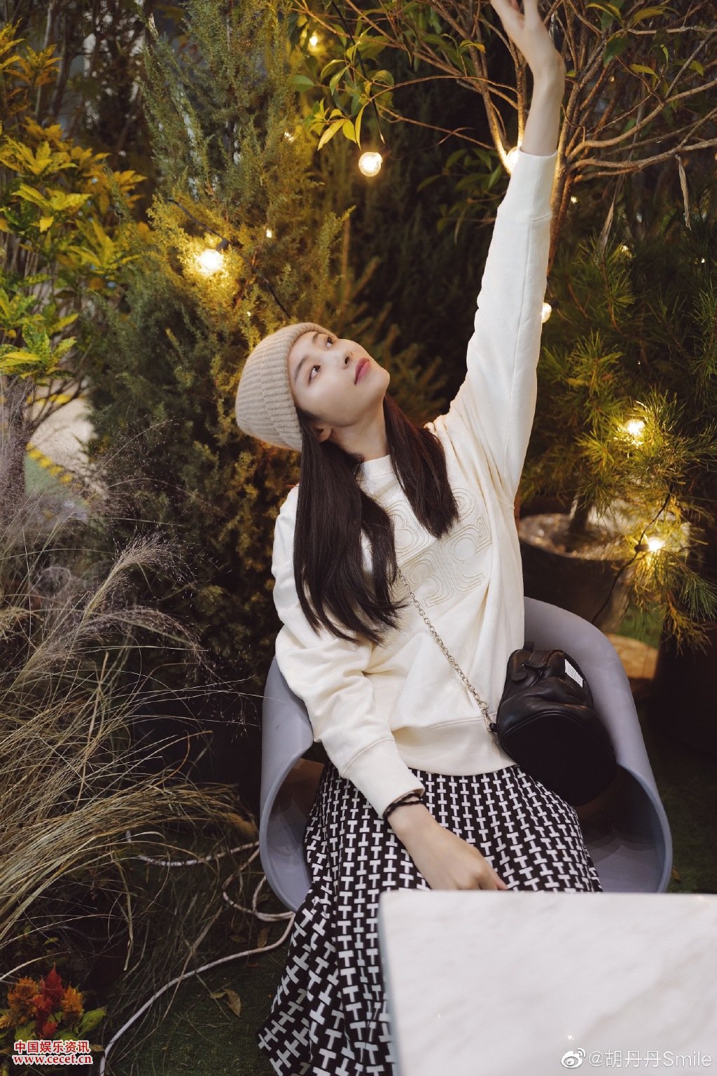 胡丹丹圓領(lǐng)衫與褶皺提花針織裙營(yíng)造復古氛圍