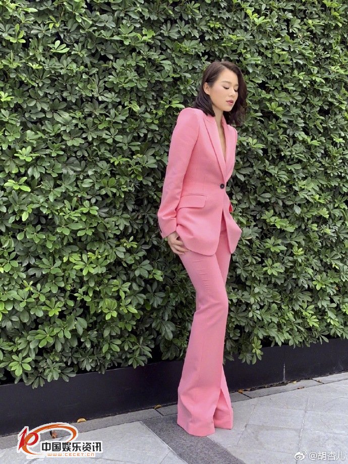 胡杏兒粉西裝真空上陣 大擺pose霸氣全開(kāi)