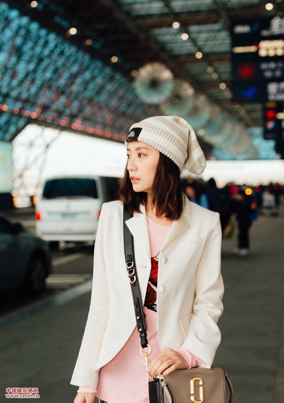 賈靜雯現身臺北機場(chǎng) 搭配方格長(cháng)裙少女感十足
