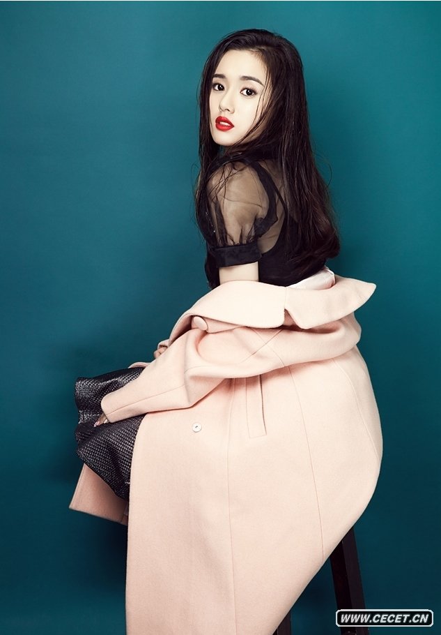江鎧同嫩粉黑色透視紗裙 濕發(fā)拂面紅唇輕啟