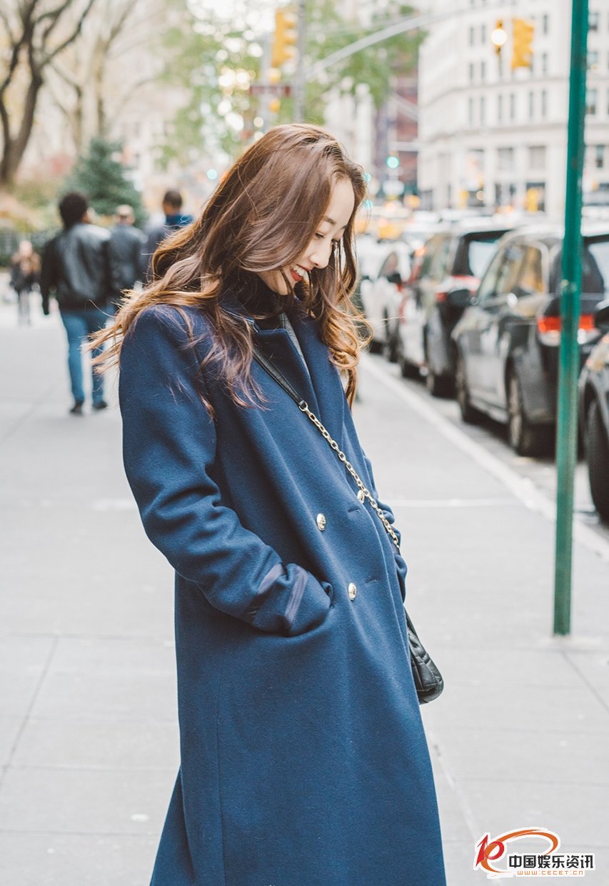 蔣夢(mèng)婕漫步在紐約街頭 妝容清麗盡顯休閑隨性