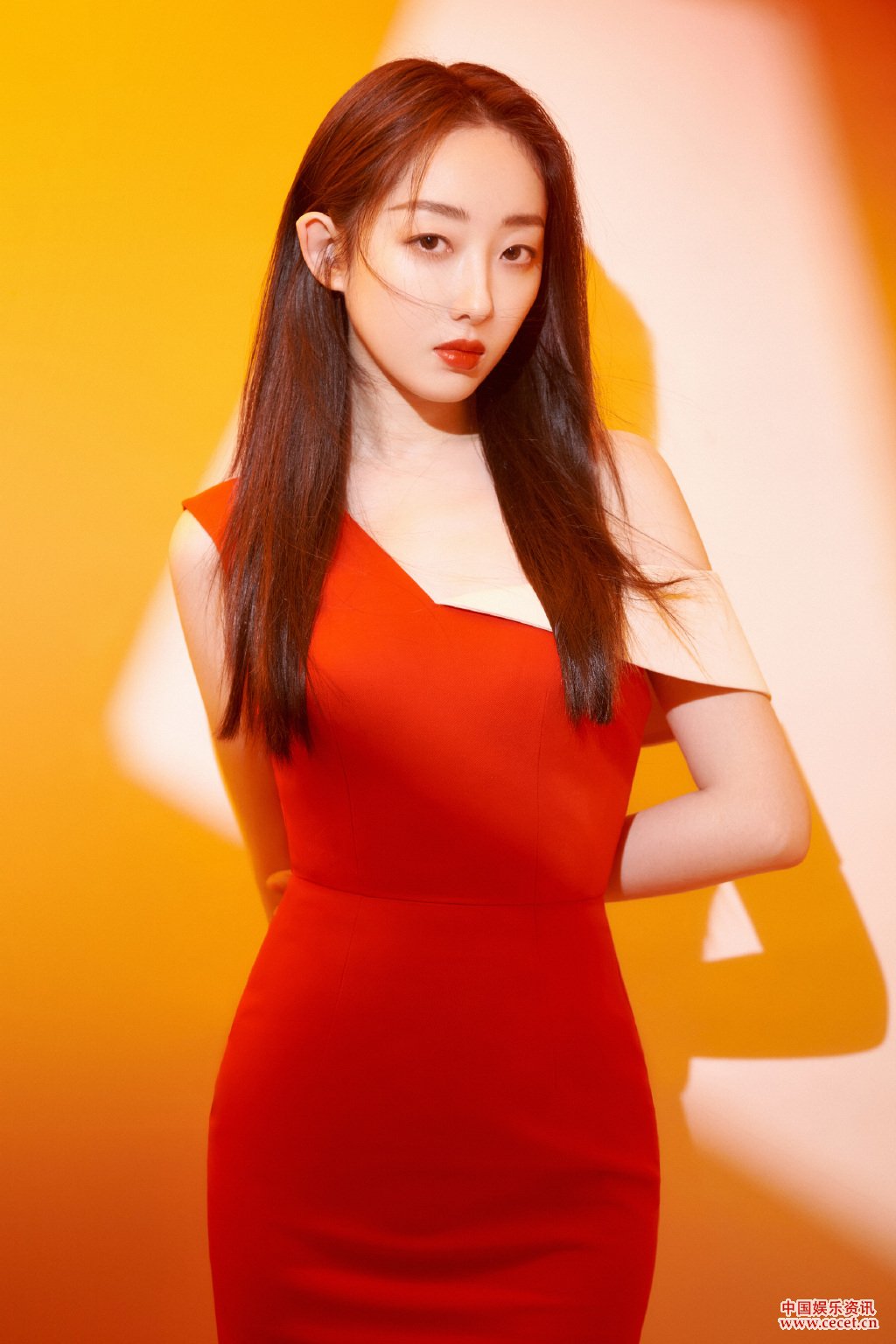 蔣夢(mèng)婕紅色斜肩緊身裙 紅的溫度熱烈奔放