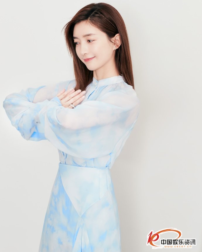 江疏影身穿透視水墨藍裙清新甜美嬌俏可人