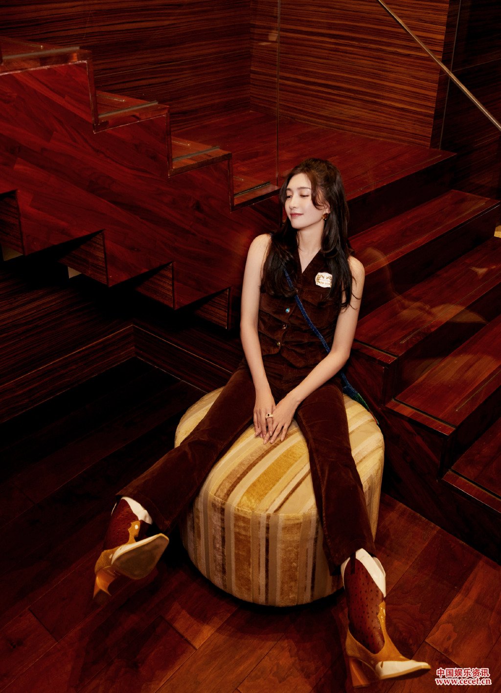 江疏影復古氛圍穿搭 深棕套裝詮釋休閑時(shí)尚