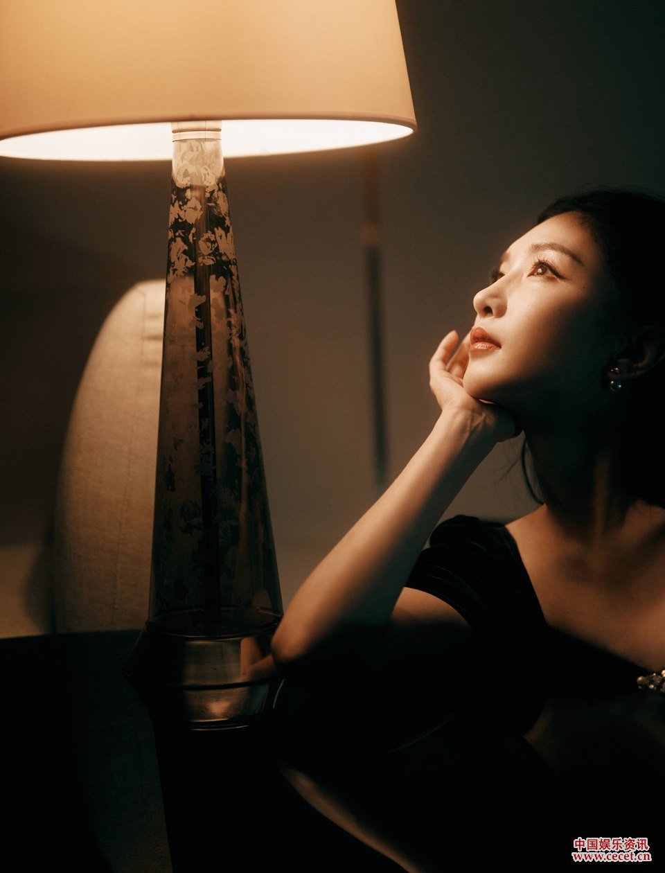 江疏影身著(zhù)一襲黑色絲絨公主裙 高貴神秘
