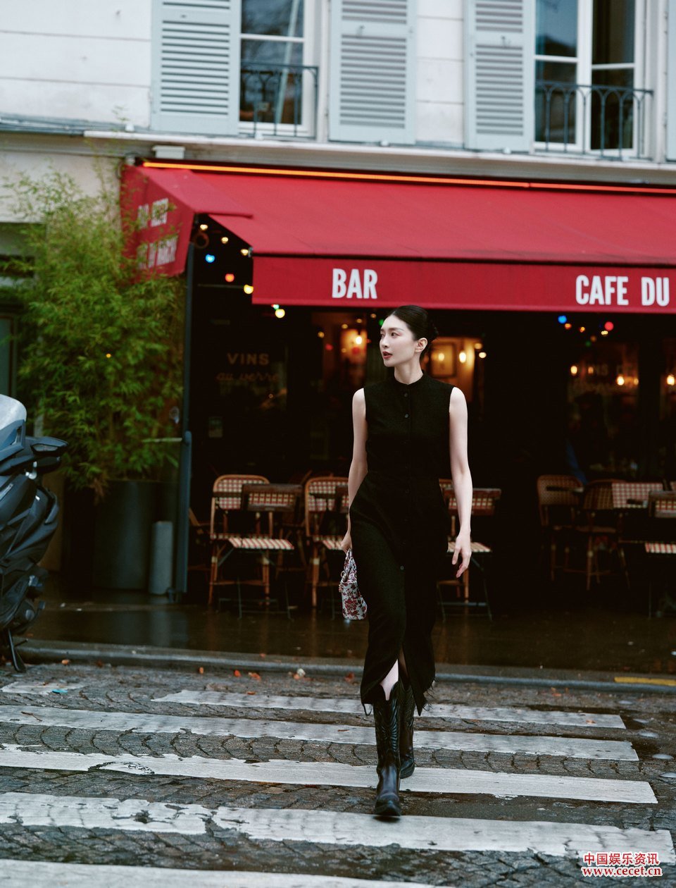 江疏影邂逅巴黎漫步街角 定格微雨下的氤氳瞬間