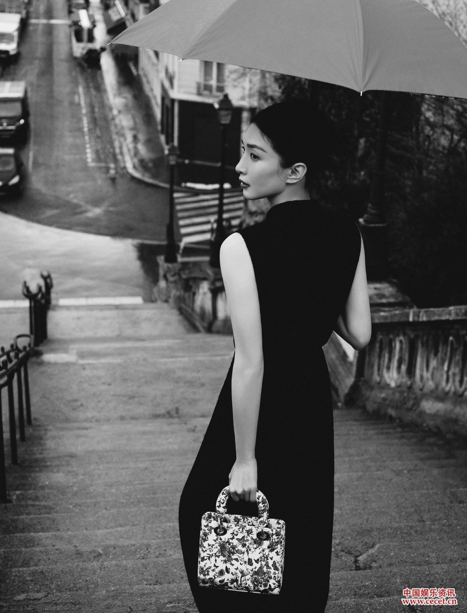 江疏影邂逅巴黎漫步街角 定格微雨下的氤氳瞬間