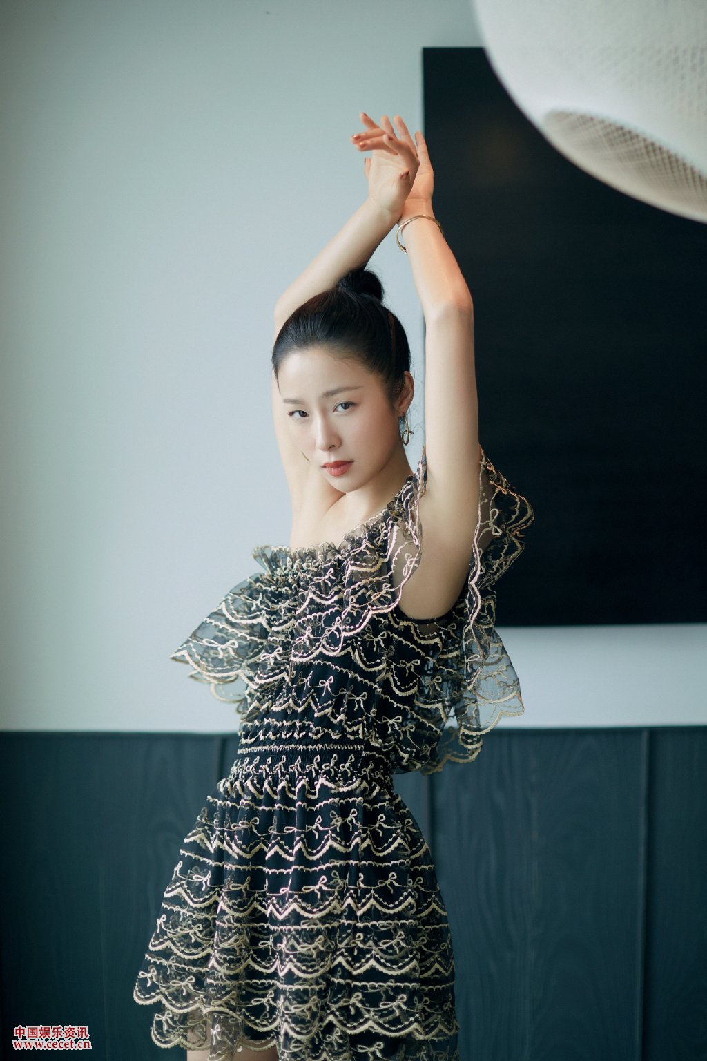 江一燕刺繡蕾絲蛋糕裙 天鵝頸鎖骨殺氣質(zhì)百變