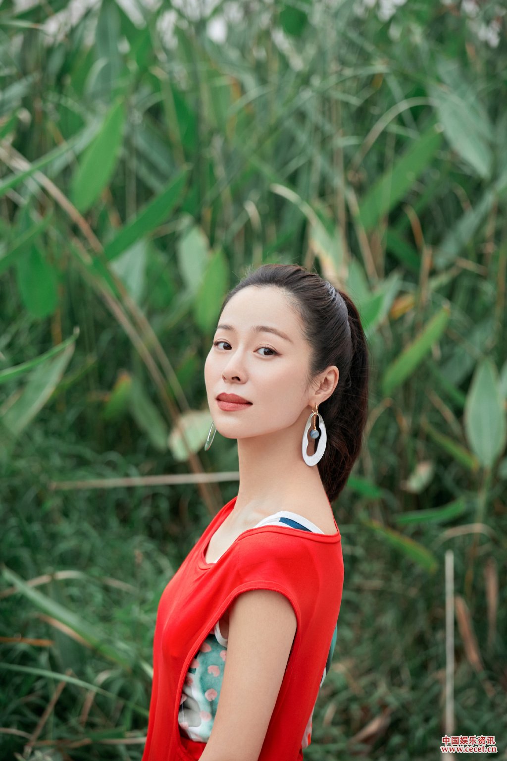江一燕一襲紅裙落落大方 長(cháng)發(fā)束起笑顏盈盈