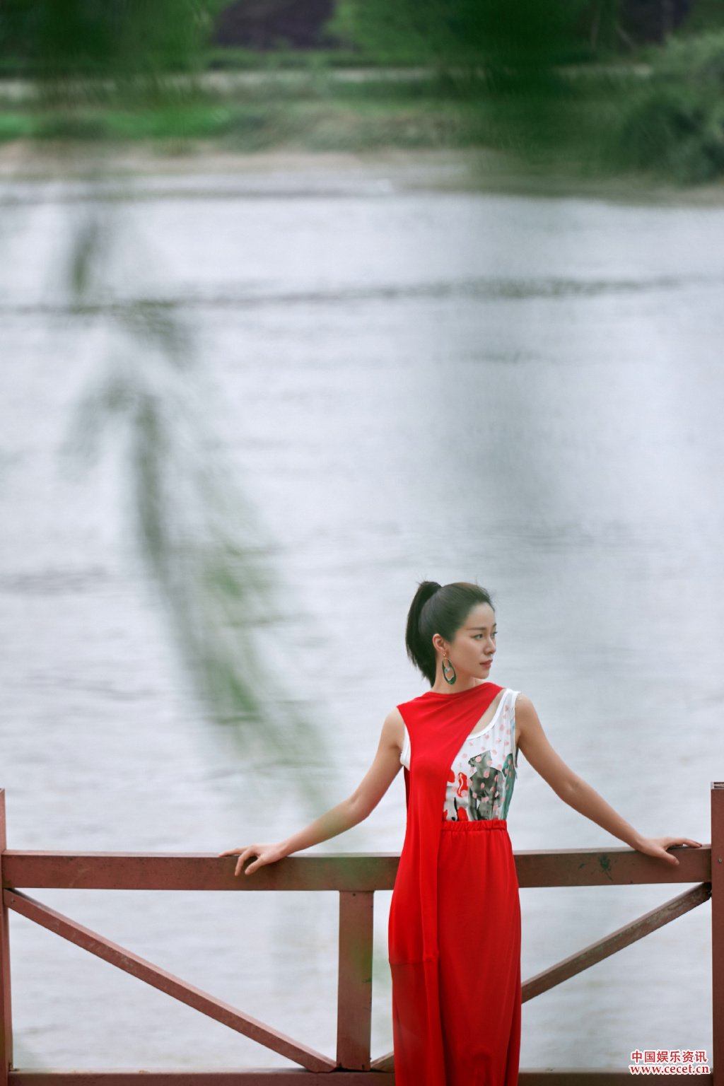 江一燕一襲紅裙落落大方 長(cháng)發(fā)束起笑顏盈盈