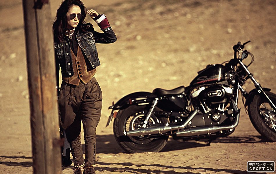 江一燕大漠中酷感大片 不同款式軍裝佩戴黑超