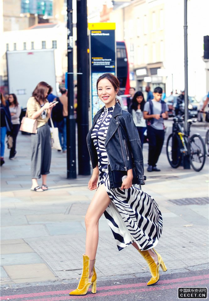 江一燕驚艷倫敦街頭 高開(kāi)叉長(cháng)裙大秀美腿
