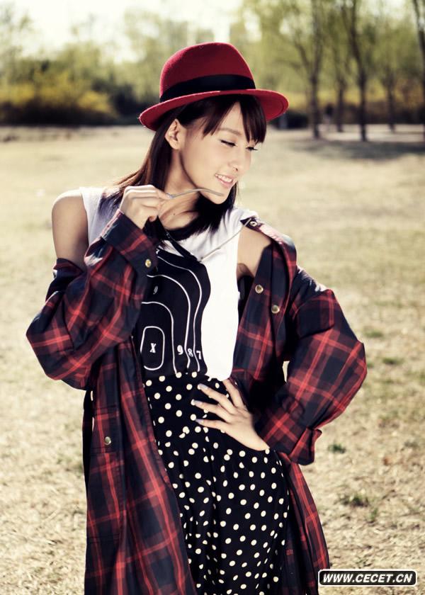 賈青夏季清涼寫(xiě)真 紅色禮帽笑容清新可人