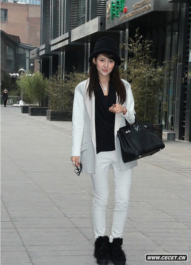 賈青街拍LOOK 黑白色經(jīng)典搭配出新意
