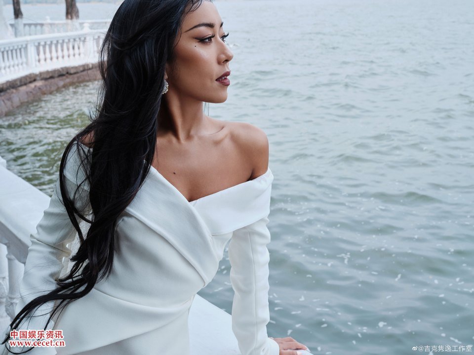 吉克雋逸純白潮流穿搭 佇立江邊氣質(zhì)溫婉