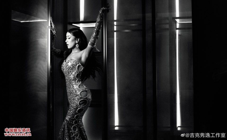 吉克雋逸銀色抹胸禮服 S身形曲線(xiàn)吸睛十足