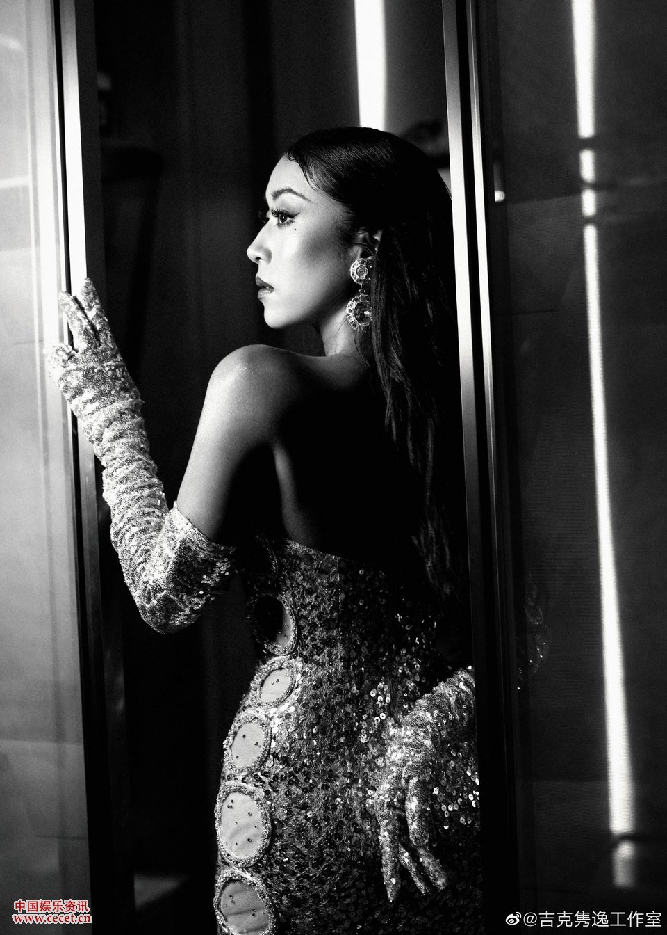 吉克雋逸銀色抹胸禮服 S身形曲線(xiàn)吸睛十足