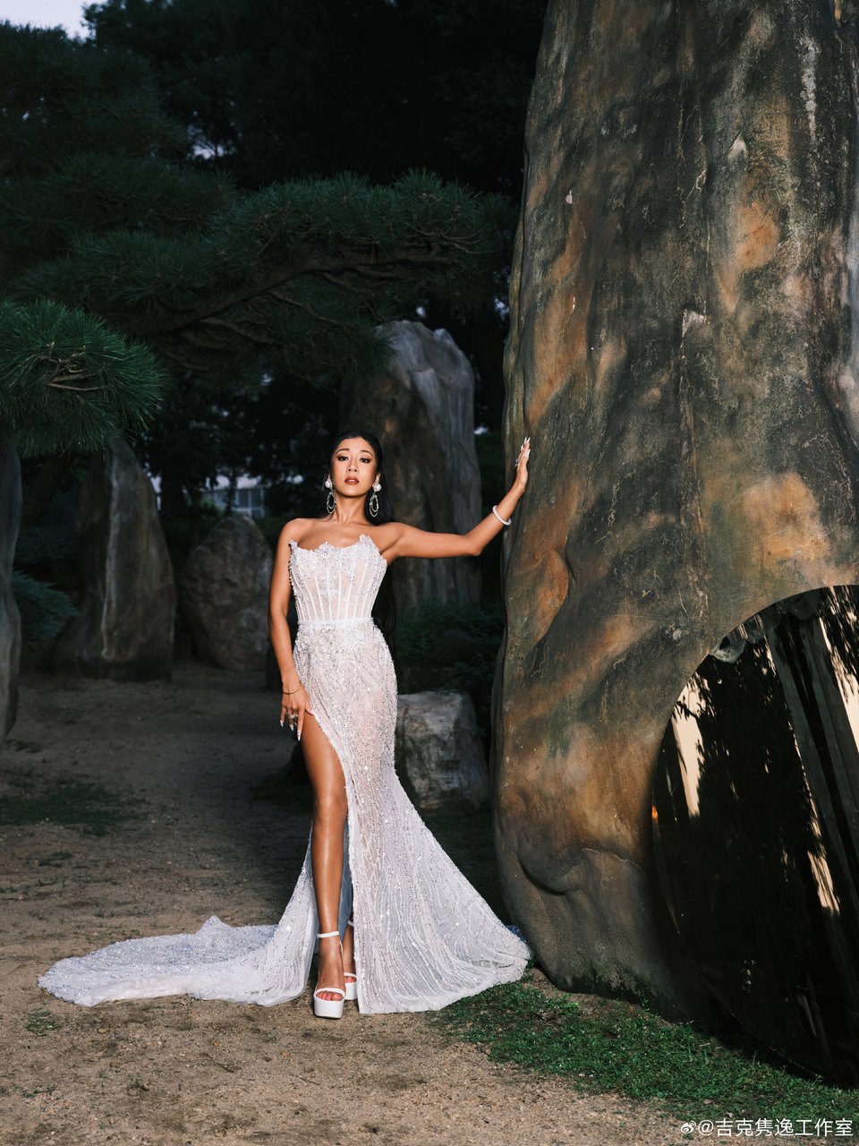 吉克雋逸開(kāi)叉禮裙漫步林間 秀出一雙迷人長(cháng)
