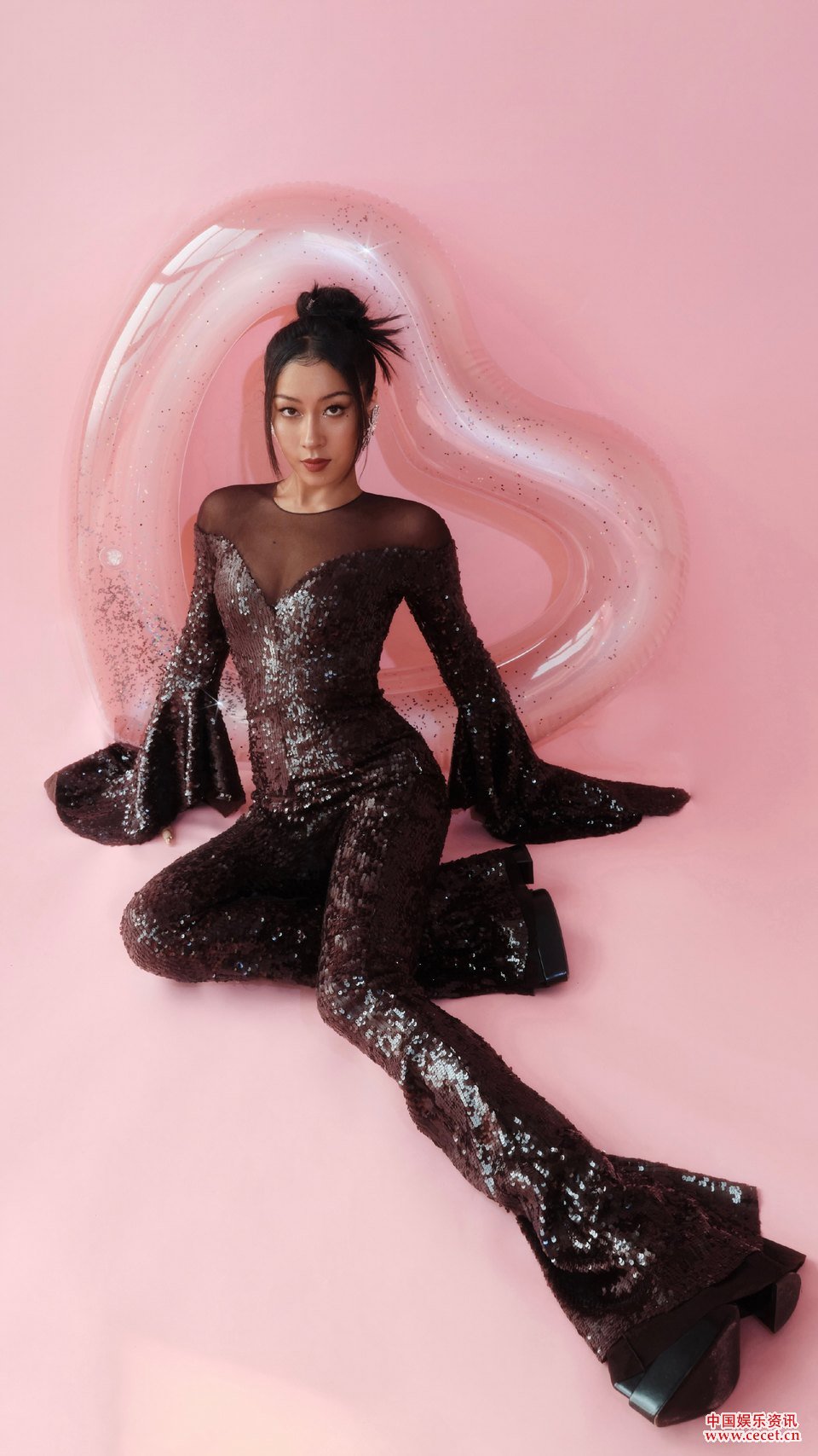 吉克雋逸身穿黑色閃片連體長(cháng)褲套裝甜美酷颯