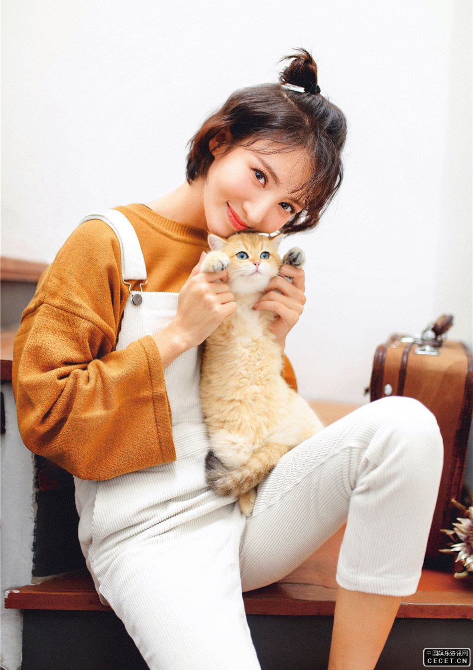 金晨靚麗清新寫(xiě)真曝光 與貓咪玩耍溫情脈脈