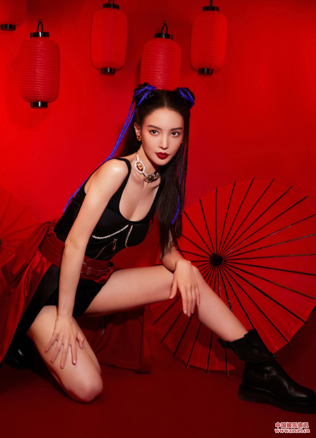 金晨紅籠處赤傘下以扇作飾解鎖畫(huà)感新造型