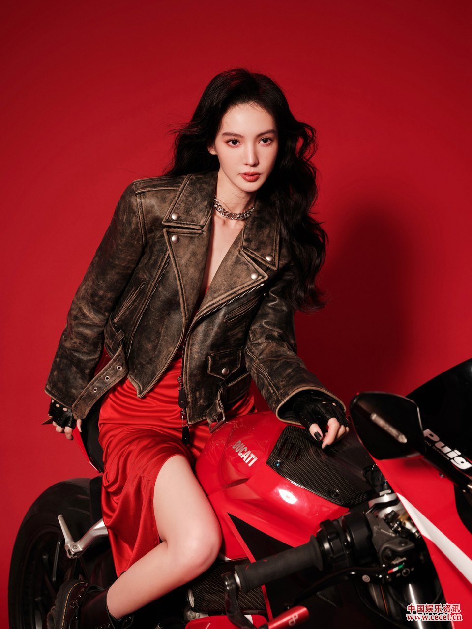 金晨皮衣紅裙機車(chē)大片 酷颯舞姿秀出更多面