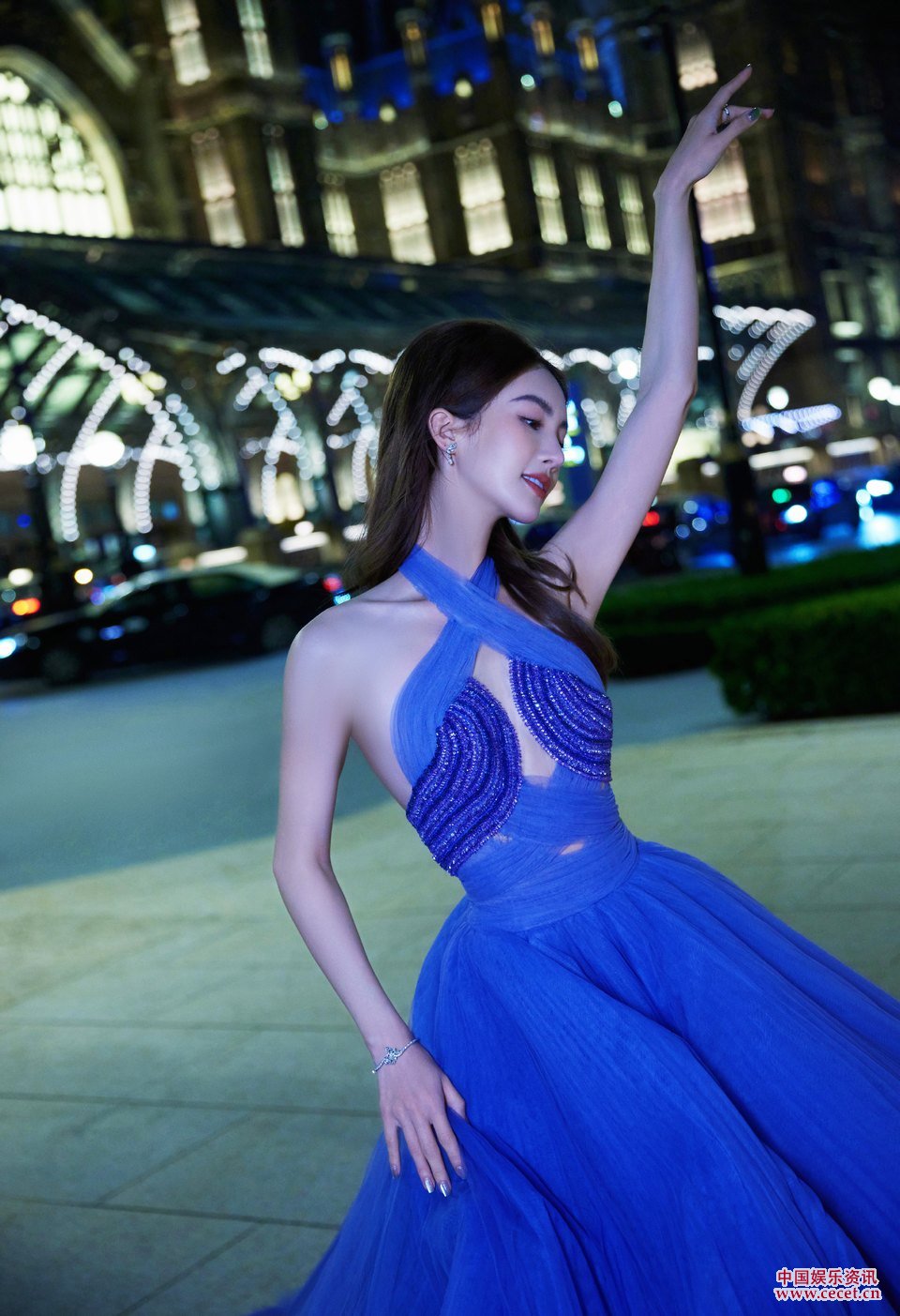 金晨輕紗搖曳身姿 燈影綽約漫溢于紫色繾綣