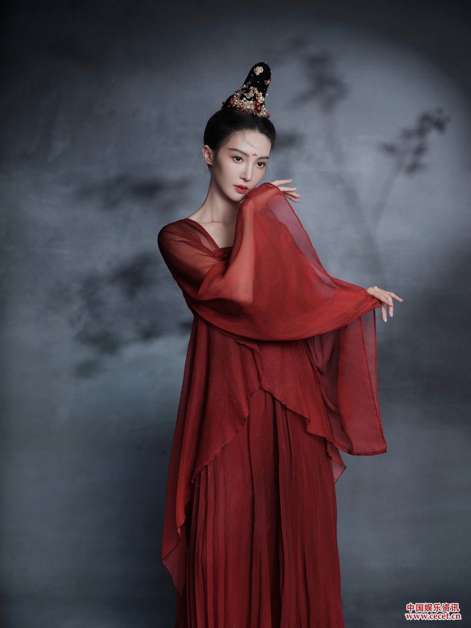 金晨紅衣裳舞暗香浮動(dòng) 斑駁的竹影勾勒古典清韻