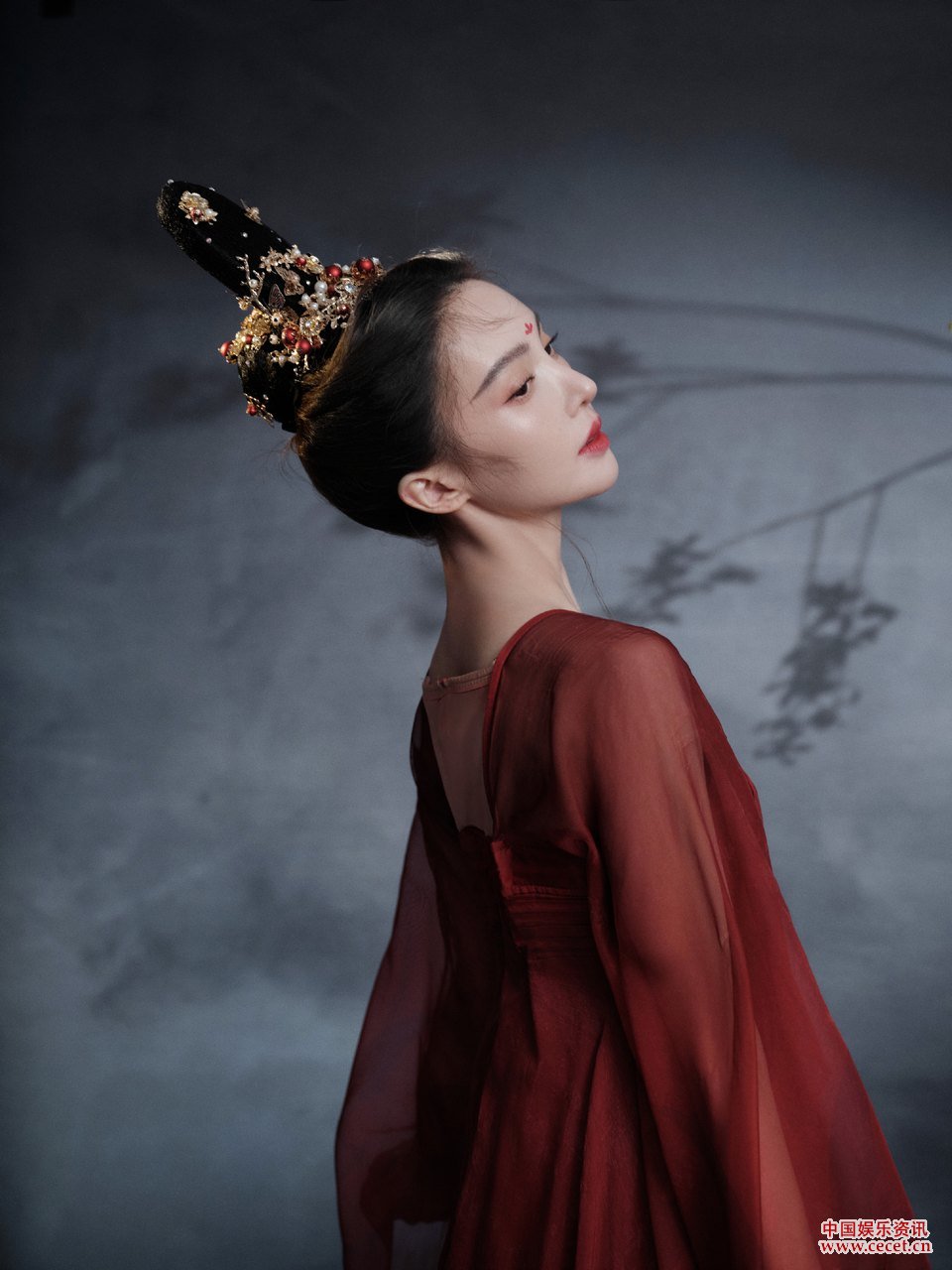 金晨紅衣裳舞暗香浮動(dòng) 斑駁的竹影勾勒古典清韻