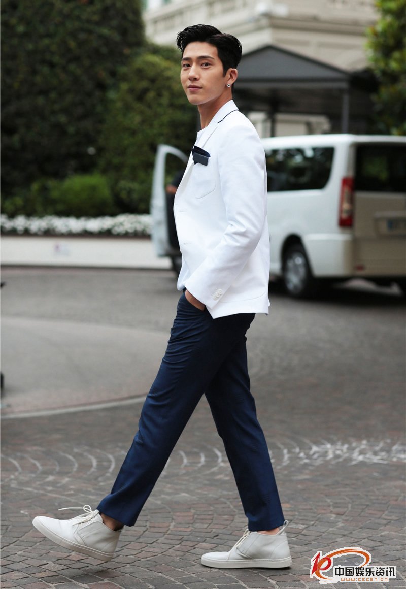 井柏然亮相米蘭時(shí)裝周 白色西裝外套休閑十足