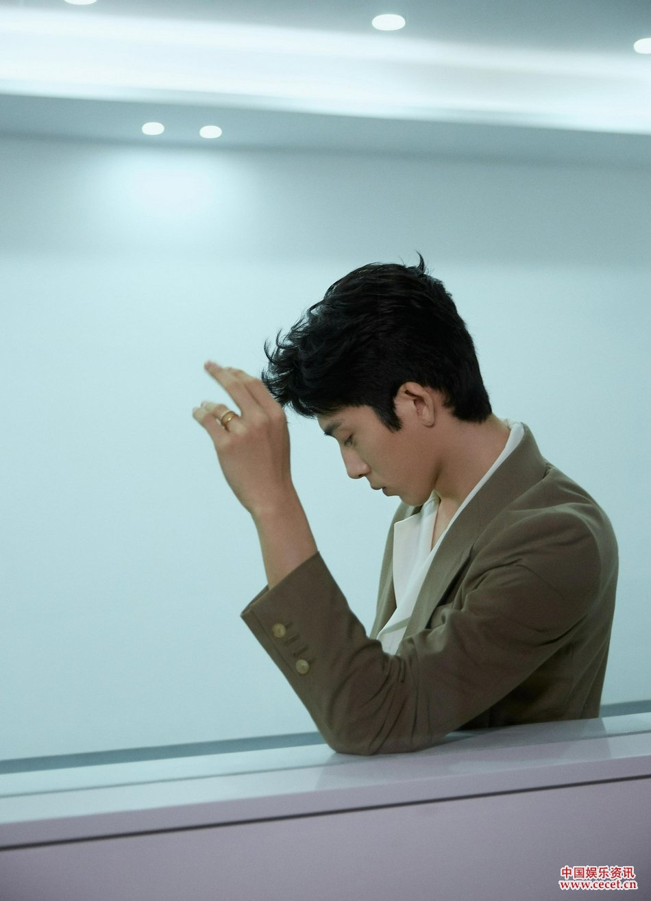 井柏然氛圍感寫(xiě)真 綠色西裝的帥哥氣質(zhì)清冷