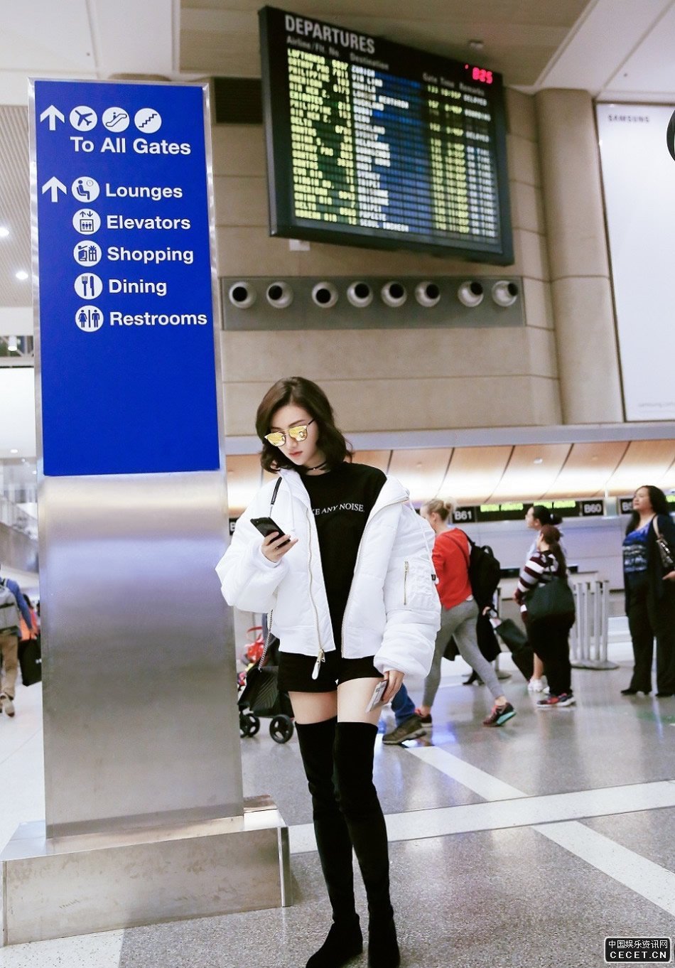 景甜現身洛杉磯機場(chǎng) 一雙過(guò)膝長(cháng)靴小露美腿