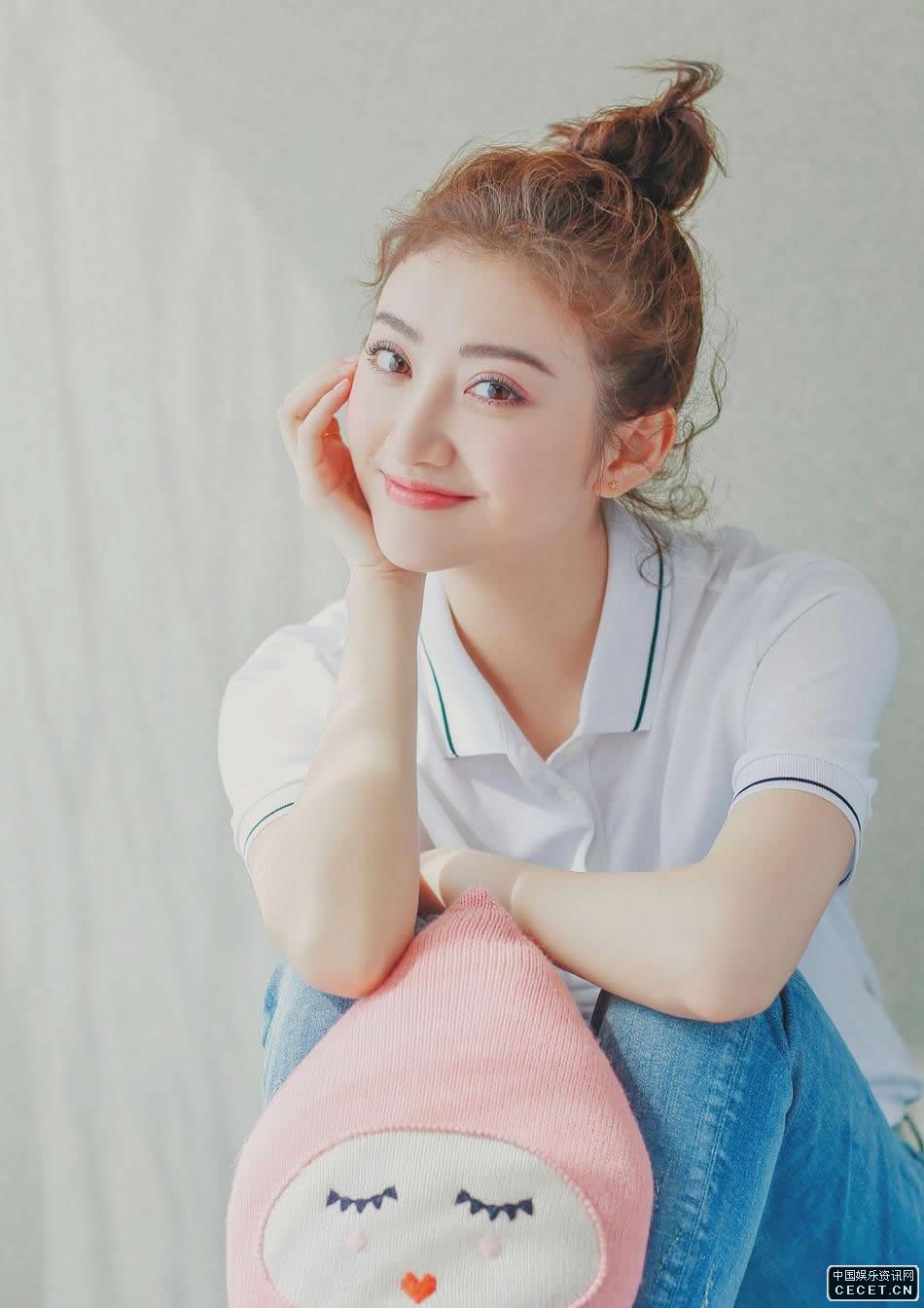 景甜丸子頭水洗牛仔褲 少女氣息撲面而來(lái)