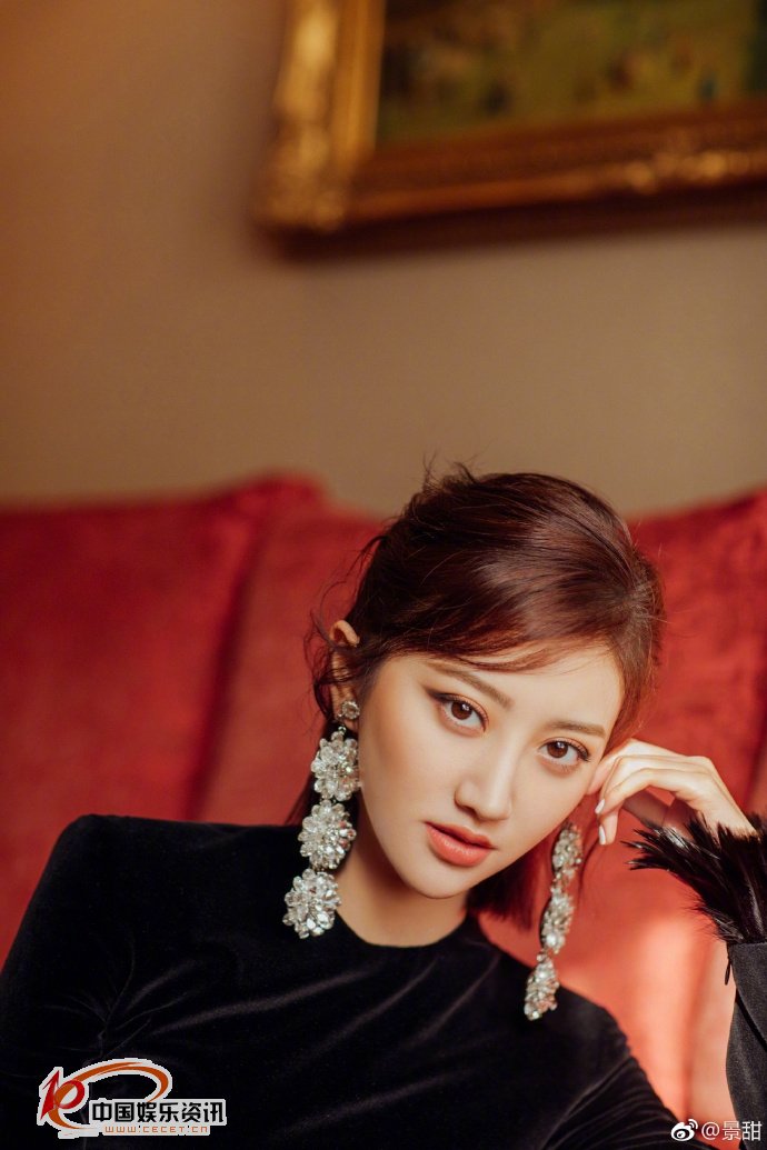 景甜短款絲絨禮服照 微煙熏妝勾勒出窈窕曲線(xiàn)
