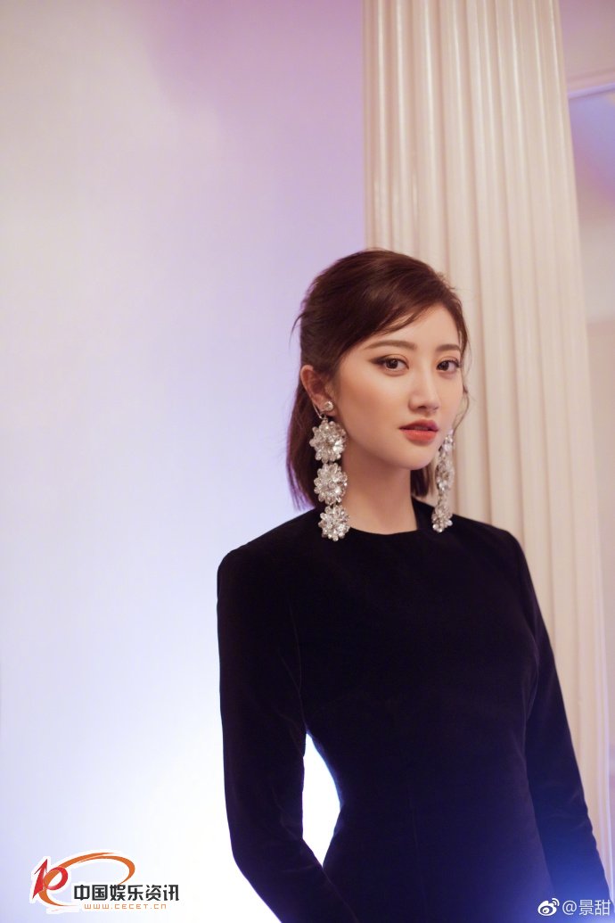 景甜短款絲絨禮服照 微煙熏妝勾勒出窈窕曲線(xiàn)