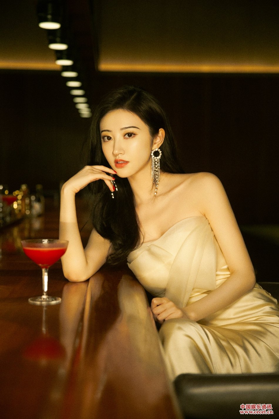 景甜香檳長(cháng)裙清晰迷人 透露出滿(mǎn)滿(mǎn)的優(yōu)雅氣質(zhì)