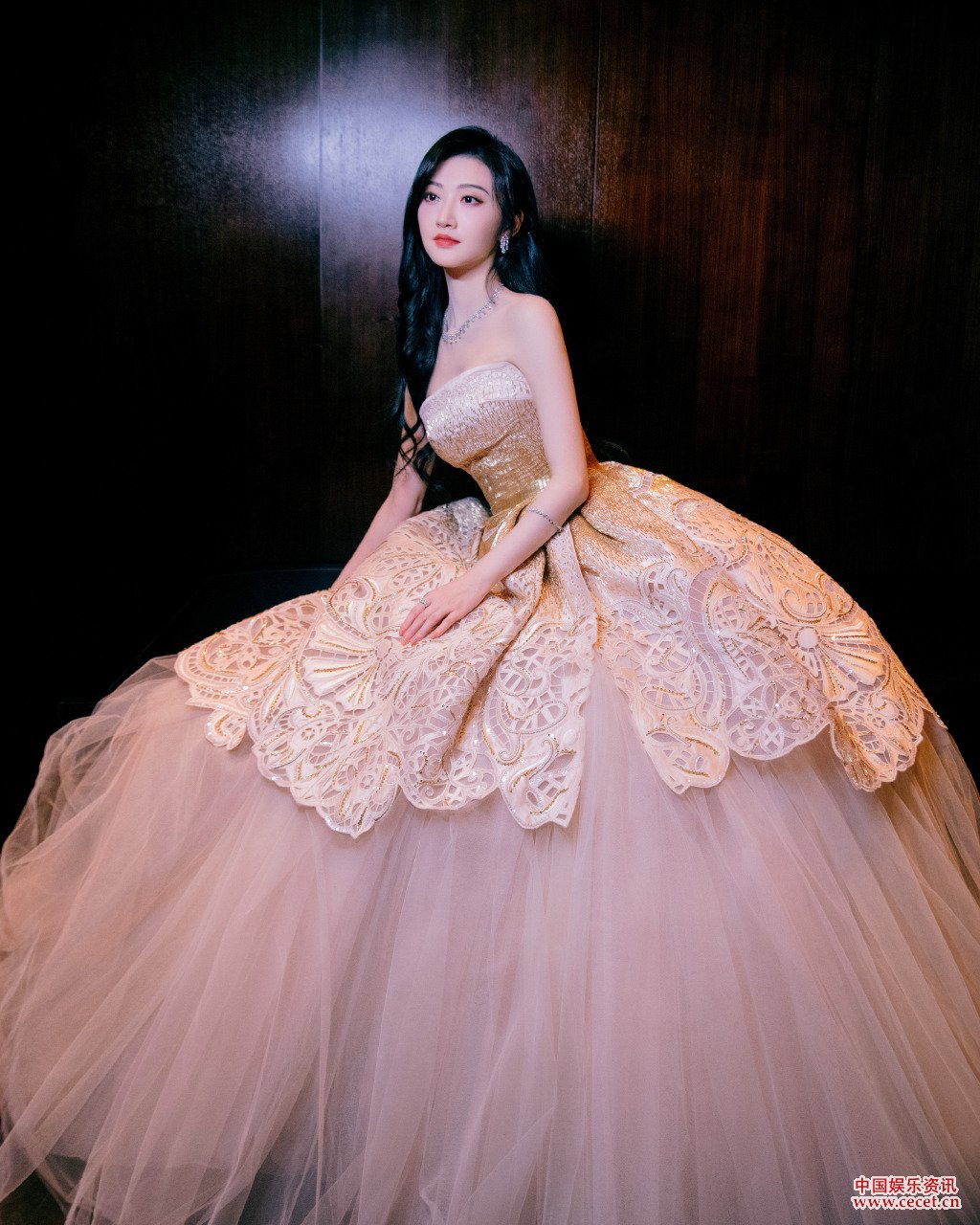 景甜薄紗幾何鏤空長(cháng)裙 眼眸有星辰光影伴溫柔