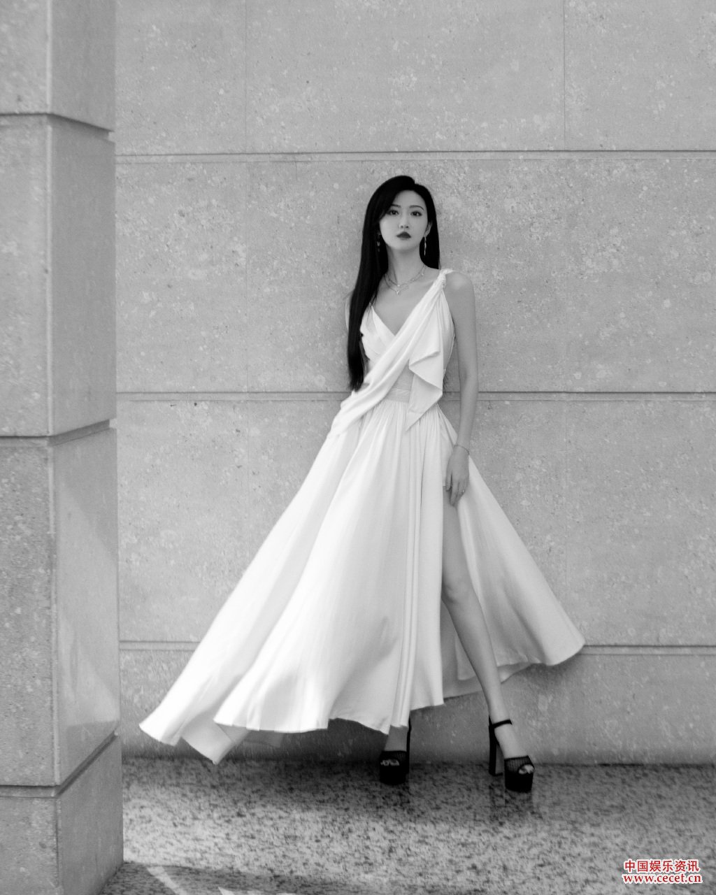 景甜白色斜紋褶裥半裙 優(yōu)雅白色致敬經(jīng)典之美