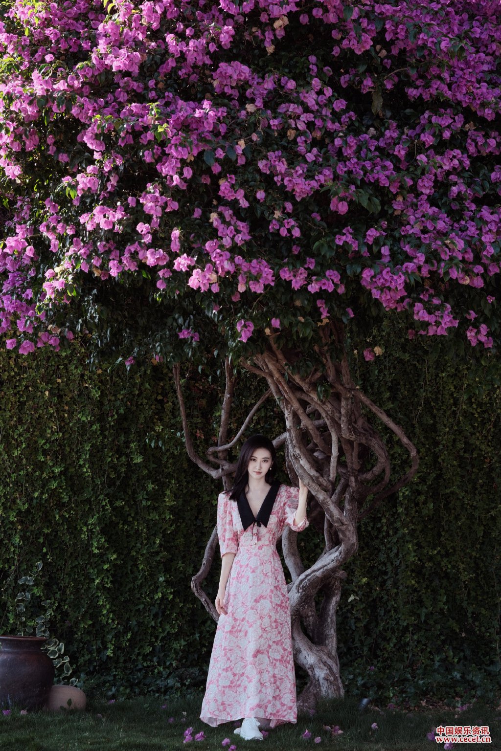景甜粉色長(cháng)裙旅途隨拍 徐徐和風(fēng)中綻放溫柔