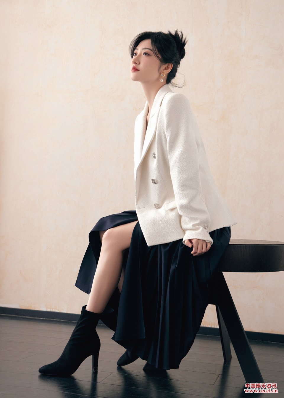 景甜白色西裝光影斑駁 繁簡(jiǎn)之間抒寫(xiě)著(zhù)浪漫