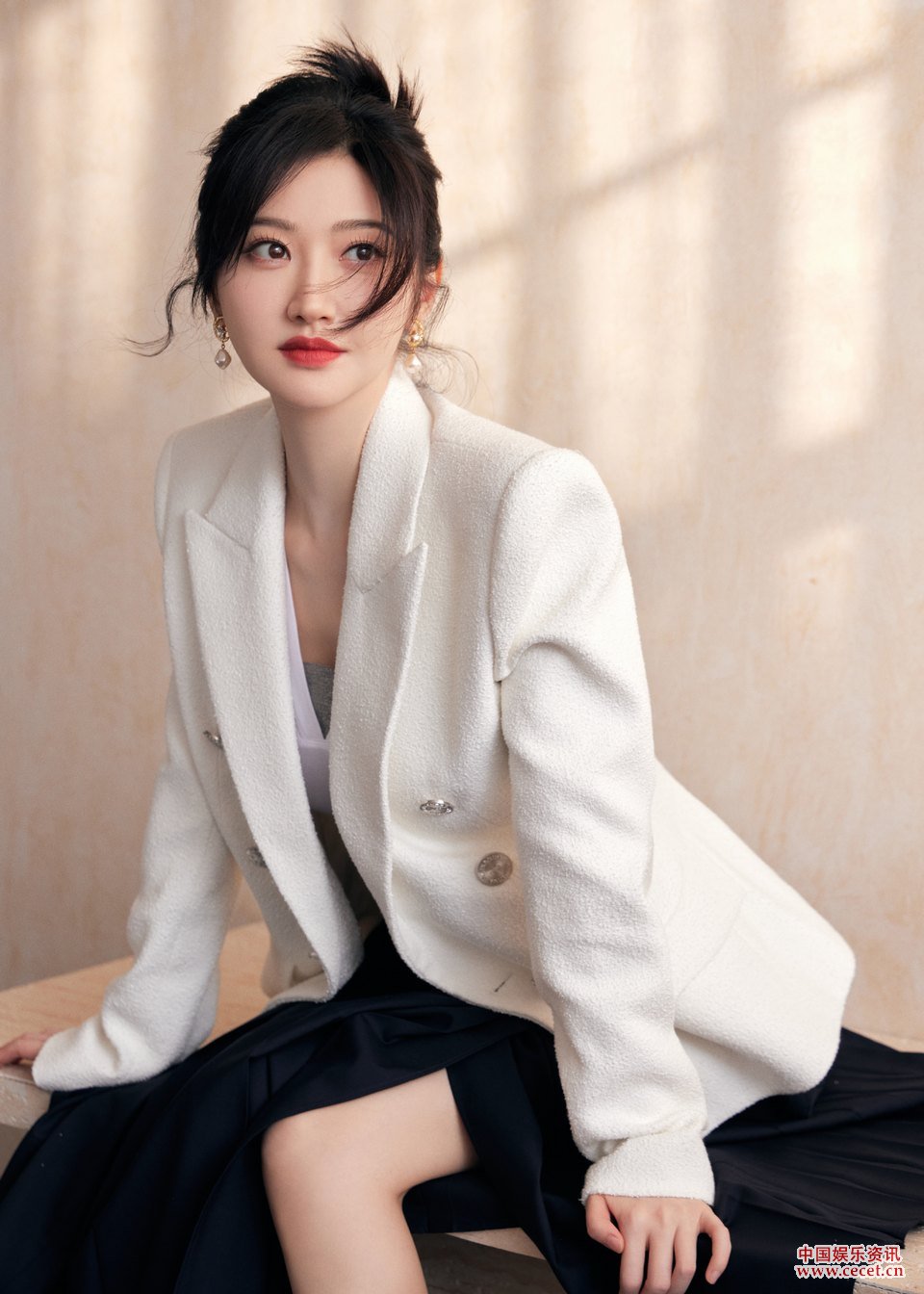 景甜白色西裝光影斑駁 繁簡(jiǎn)之間抒寫(xiě)著(zhù)浪漫