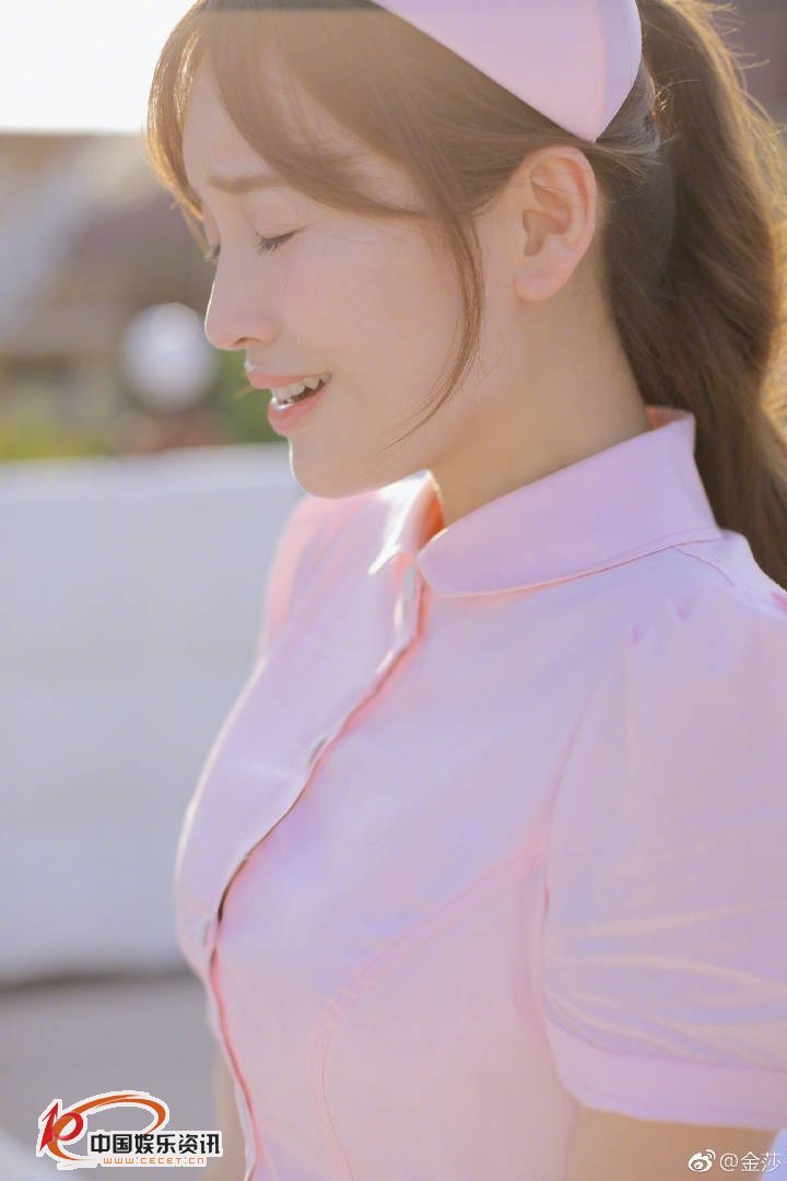 金莎粉色護士服造型 嘟唇親吻小點(diǎn)心甜笑動(dòng)人