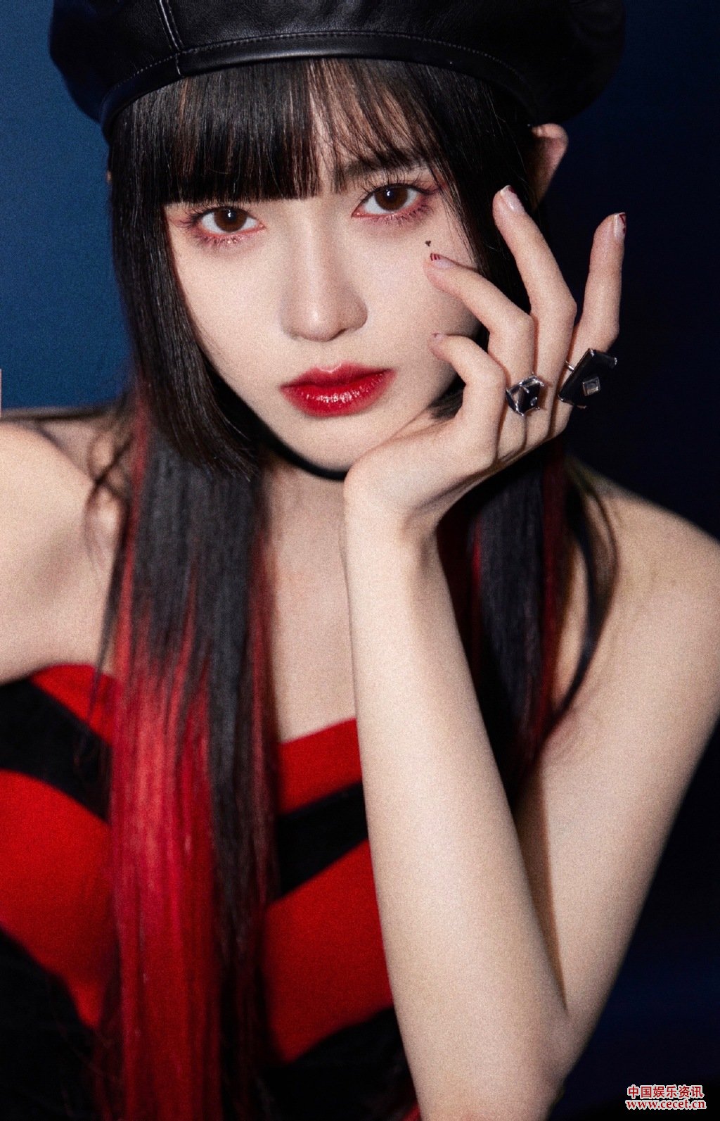 鞠婧祎紅色挑染造型 五官好精致酷颯氣場(chǎng)