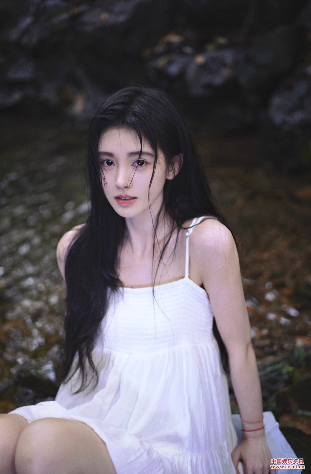 鞠婧祎白色吊帶出游照 與陽(yáng)光溪流樹(shù)木共度