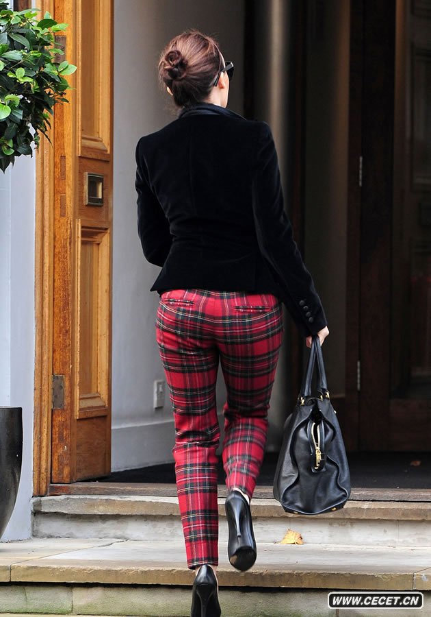 凱莉-米洛街拍 絲絨外套搭配格紋褲