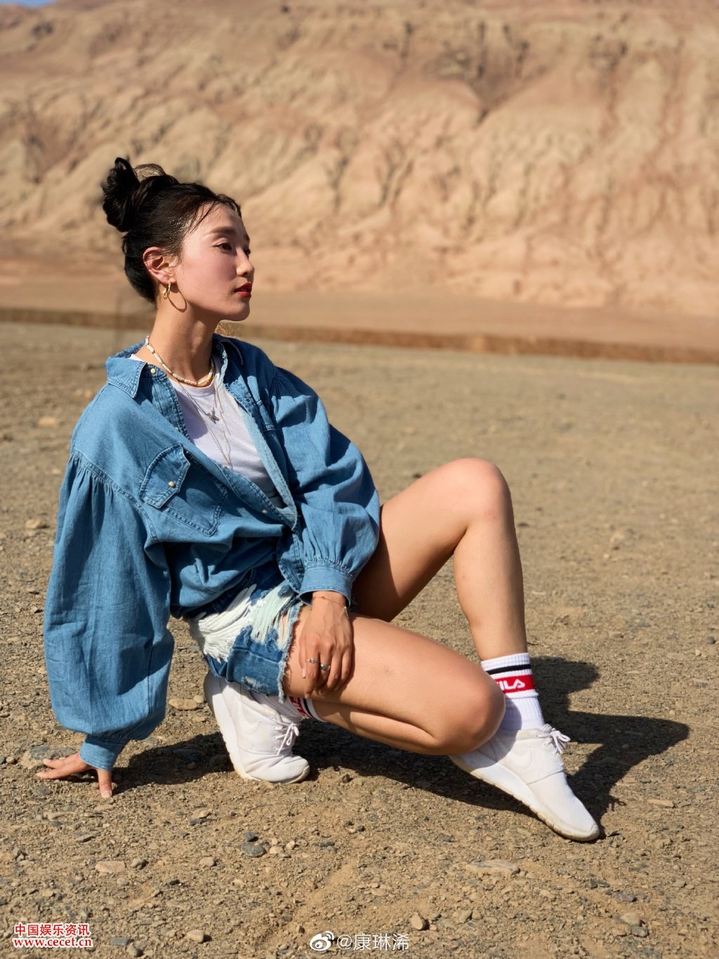 康琳浠置身新疆火焰山 舞姿輕盈身材婀娜