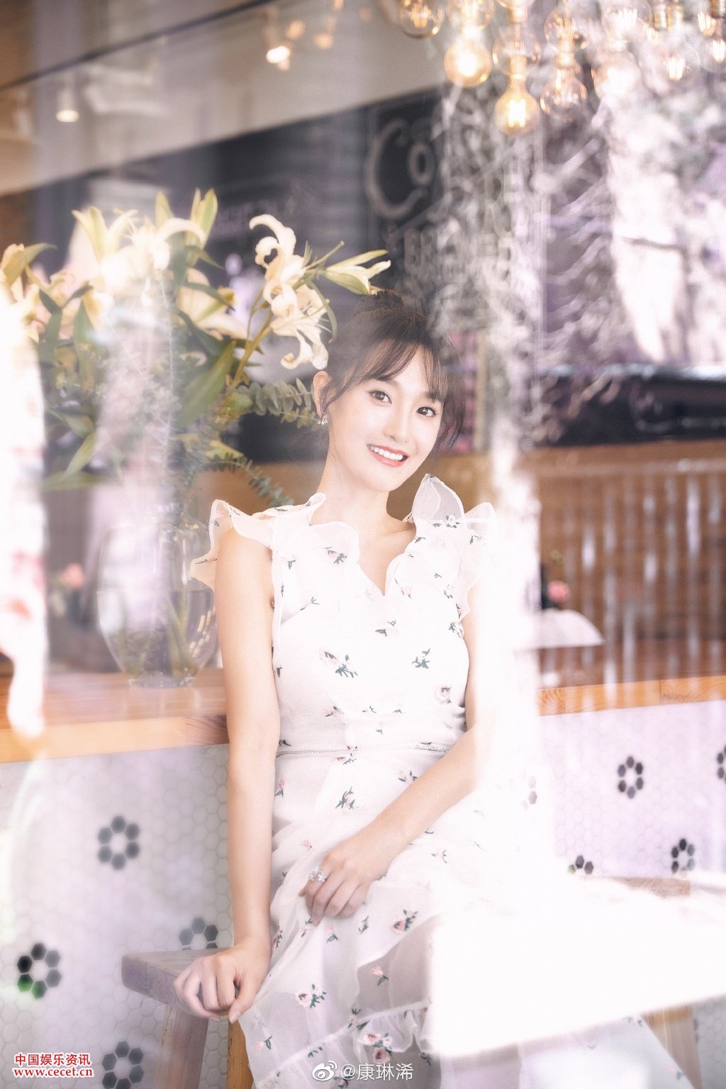 康琳浠置身花店中 氣質(zhì)超凡脫俗猶如花仙子