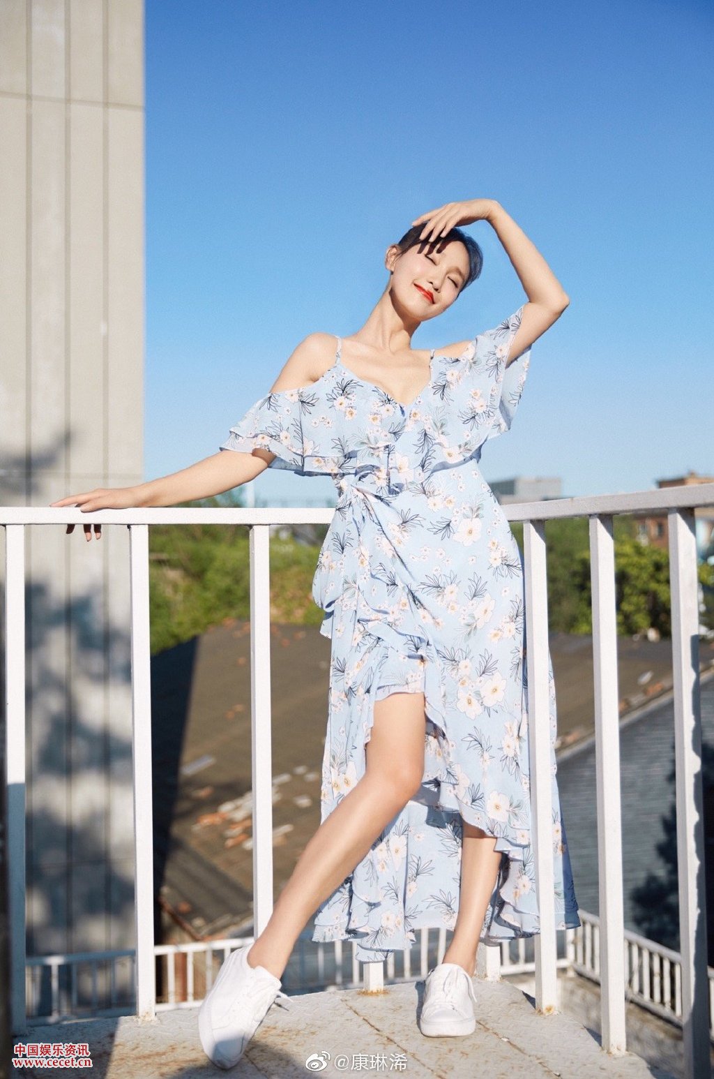 康琳浠在藍天白云下清純可愛(ài)的容貌引關(guān)注